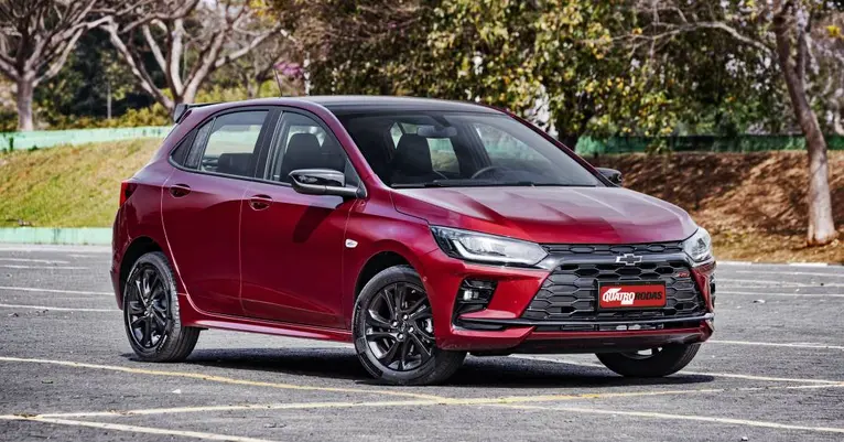 O Chevrolet Onix RS 2026 chega com visual esportivo, aerofólio e rodas pretas, mas sacrifica itens como sensores de estacionamento. Motor 1.0 turbo flex rende