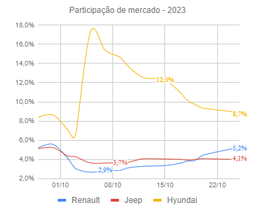 Aqui está o ranking das montadoras mais vendidas até o dia 25 de outubro de 2023: